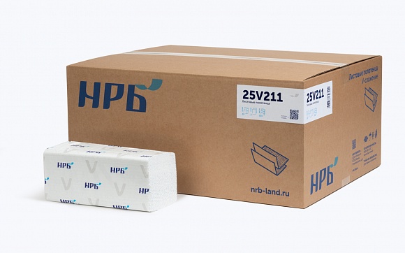 Полотенца в пачках NRB-25V211 белые V укл. 2-cл 210 листов 25*21 с рисунком*20 уп. вывод