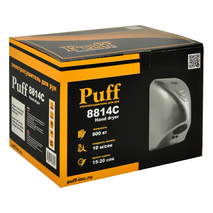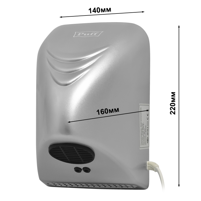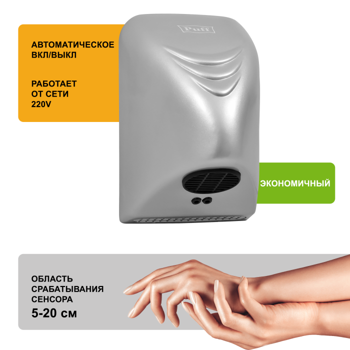 ОписаниеТихий (малошумный) электросушитель для рук Puff-8814С.