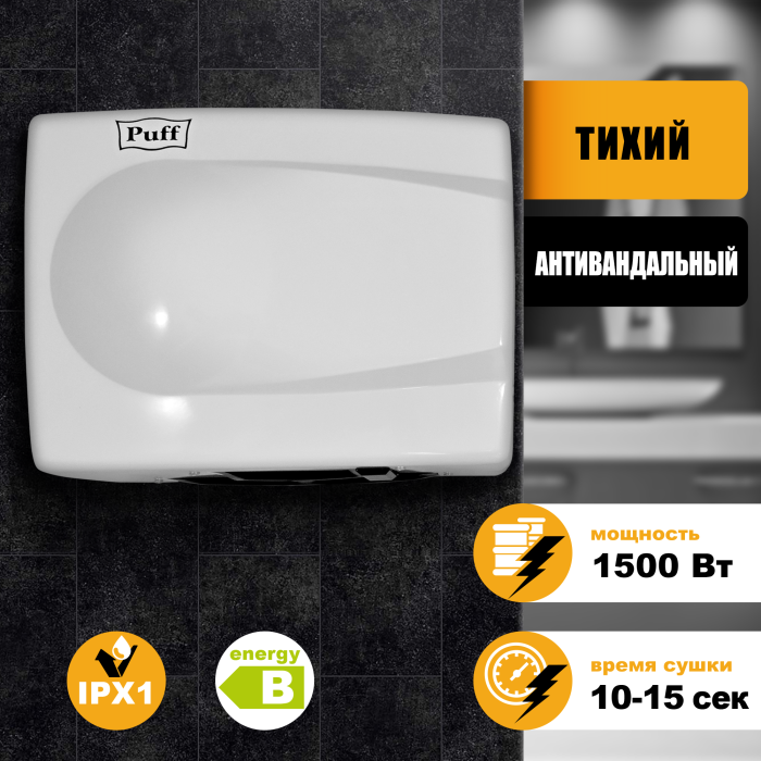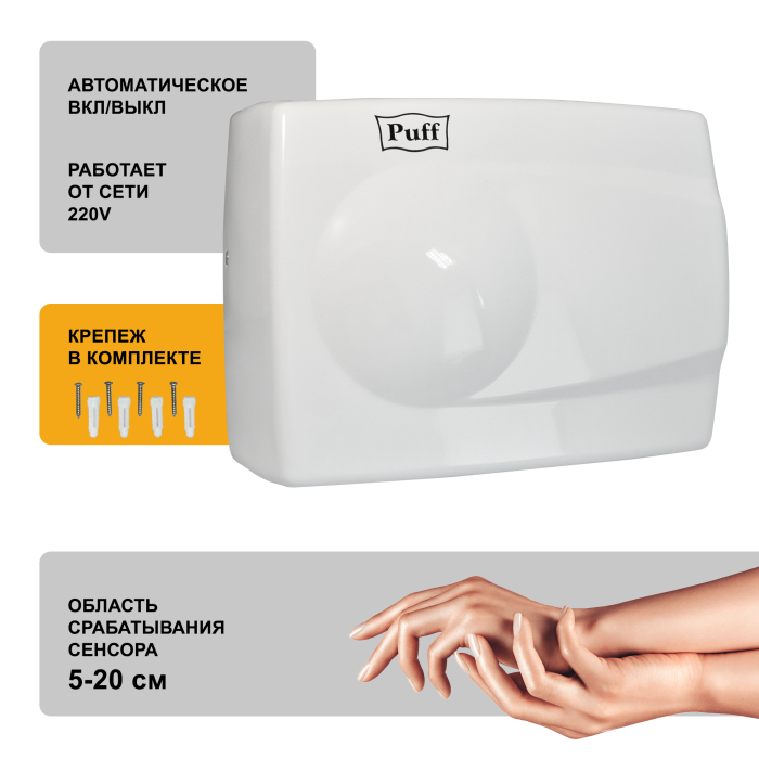 Электросушитель для рук Puff-8828W 1401.333, белый, 1,5 кВт